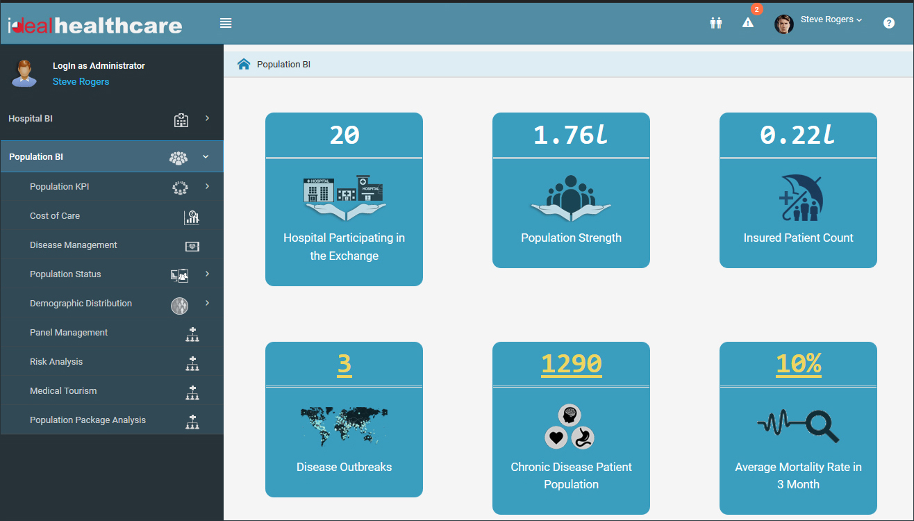 As one of the pioneering companies Ideation Technology has embarked on providing the Health Care Business world Analytics approach in making the Return on Investment and Care-as-a-Service with the best offer to the stakeholders. The optimization and service-profitability to all stakeholders also reduces the cost-overhead to the end-users and service takers. Ideal Healthcare Solution proves this hypothesis into practice by bringing in the Data Analytics and Business Intelligence technology.